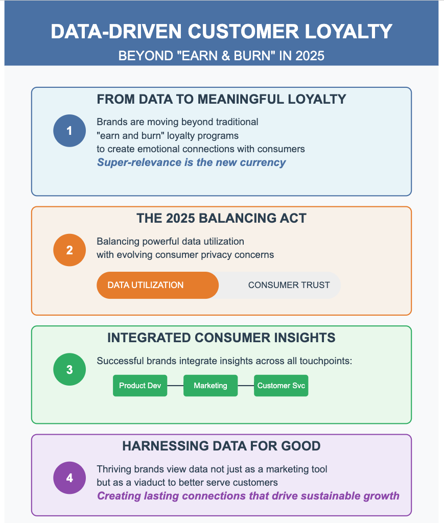 The key challenge for brands in 2025 is balancing data utilization with consumer trust. As privacy concerns continue to evolve, brands must demonstrate responsible data stewardship while delivering value to their customers. Companies that successfully navigate this balance will build deeper customer relationships by showing they understand and respect consumer preferences.