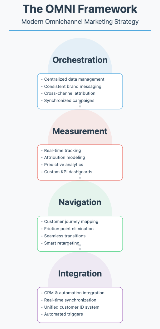 By following the OMNI Framework, organizations can transform their marketing approach from siloed channel management to truly integrated omnichannel experiences. This systematic approach ensures consistent brand experiences, improved customer satisfaction, and maximized marketing ROI across all touchpoints.